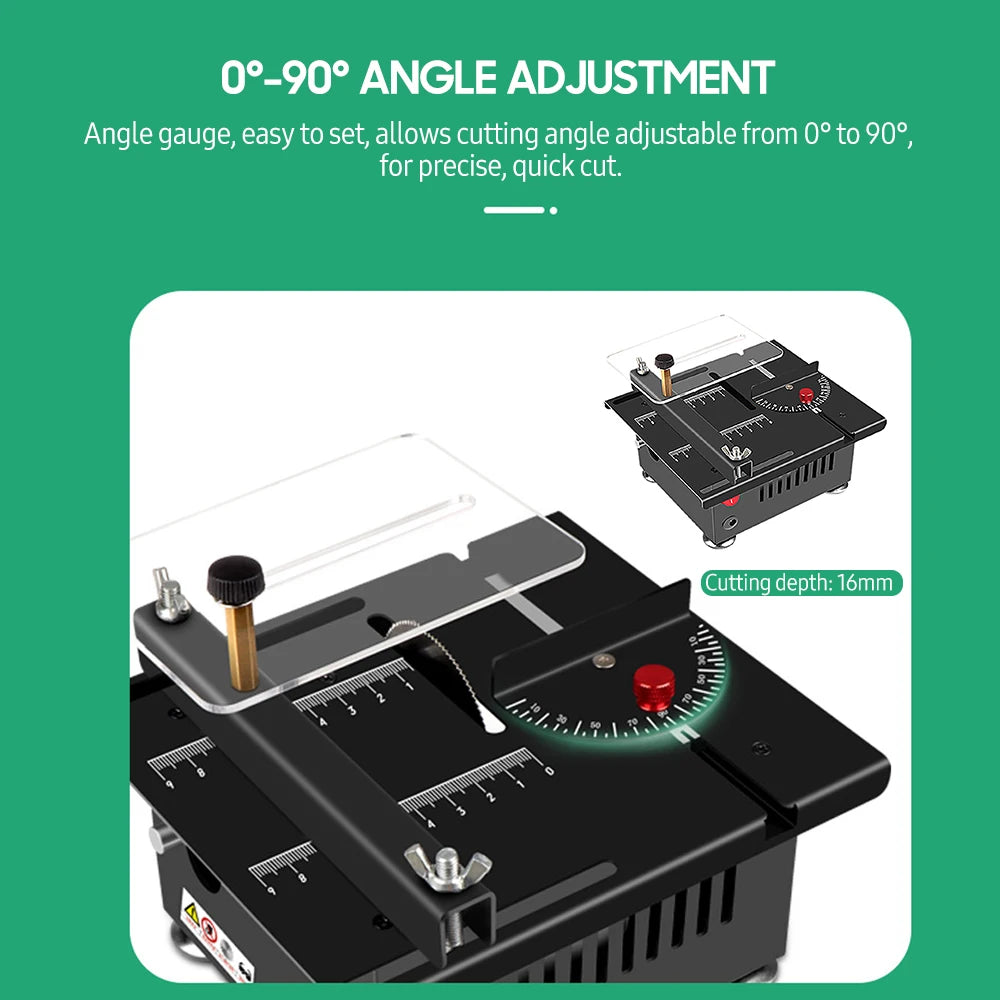 100 multi-functional table saw, mini desktop electric saw blade, adjustable speed and Angle, lifting blade, 16MM cutting depth