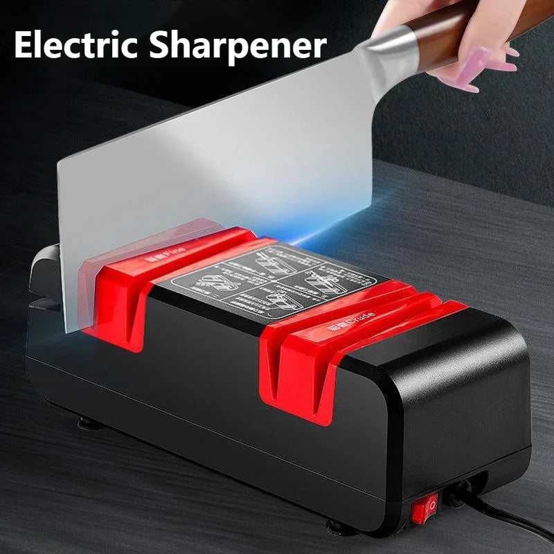 MULTI-FUNCTION SHARPENER-First choice in the kitchen, professional electric knife provides 3 different grooves: fine grooves can improve the smoothness of the blade. The special side scissor groove is specially designed for knives and scissors. The cylindrical slot on the side is specially designed for screwdrivers. The all-in-one electric knife sharpener can meet all your grinding needs in the kitchen.